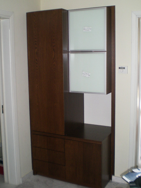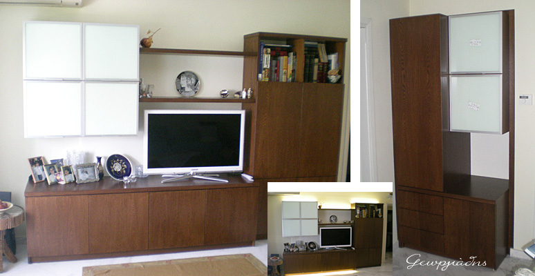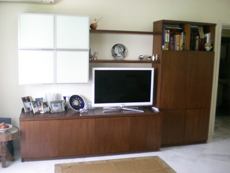 Σύνθεση ΤV από ξύλο δρυός. Ειδική λεπτομέρεια στους κρυφούς φωτισμούς με ταινίες LED.