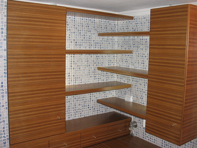 Σύνθεση επίπλου με κρυφούς ένθετους φωτισμούς, καπλαμάς ZEMBRANO φυσικής απόχρωσης.