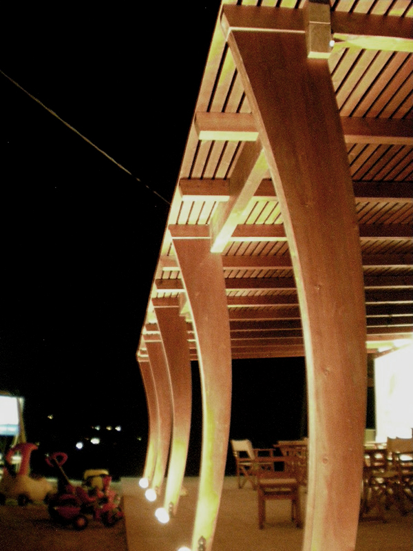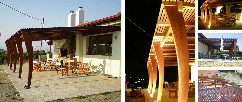 Πέργολα μασίφ σουηδικής ξυλείας ιδιαίτερου σχεδιαστικού, κατασκευαστικού και αισθητικού αποτελέσματος.