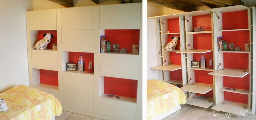 Βιβλιοθήκη με όλα τα πορτάκια του ανοιγμένα.