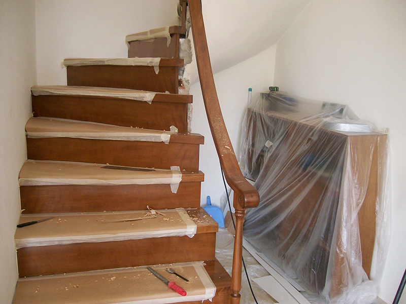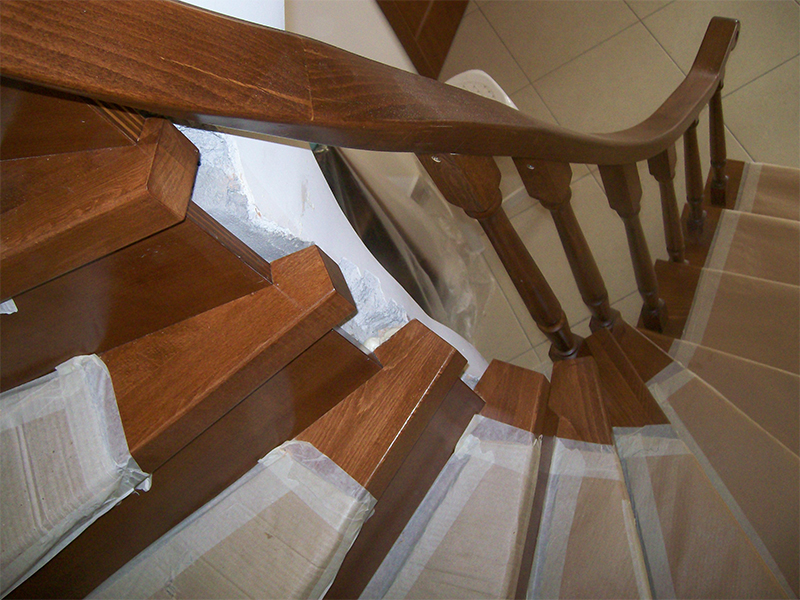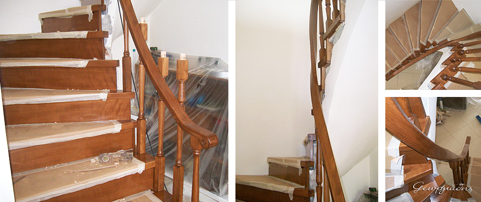 Κατασκευή φορμαριστών πατημάτων σκάλας μασίφ οξιάς. Κουπαστή μονοκόμματη σύμφωνα με τα υψόμετρα της κατασκευής.